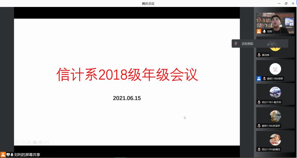 6月15日晚,信息与计算科学系召开2018级就业动员会。由于疫情防控工作需要,本次会议在线上进行。信息与计算科学系李升主任、分管辅导员刘利老师、2017级杨吉清学长和全系2018级同学参加。会议由刘利老师主持。