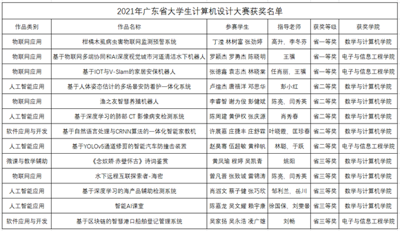团队的《基于物联网多端协同和AI深度视觉城市河道清洁水下机器人》、《基于IOT与V-Slam的家居安保机器人》三项作品勇夺省赛一等奖。