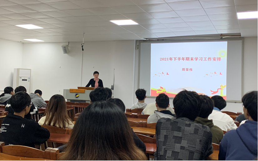 会上,结合《广东海洋大学全日制本科学生学籍管理规定》( 【2017】78号)和《关于进一步加强教风学风考风建设和监考巡考工作的通知》,周荣伟副书记详细为学生干部解读了学校学籍管理规定中关于“考试”“缓考”“缺考”“考试作弊”和“学位认定”等规定,结合学生工作实际案例,要求与会学生干部认真研读学校规定,做好班级班风、学风管理工作,引导全班同学诚信应考。会上,周荣伟副书记还对近期疫情防控、校园安全防范等做了具体部署。