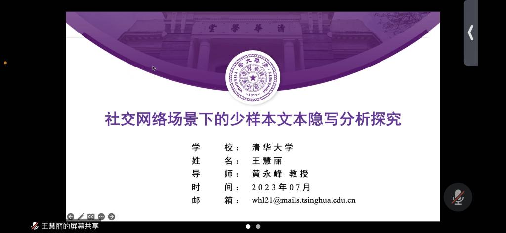黄小玲老师主持,她感谢大家对2023年广东省“多媒体信息安全”研究生暑期学校的大力支持,期待未来有机会更进一步合作和交流。