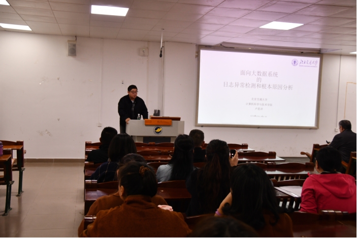 12月25日下午,受CAM4 邀请,北京交通大学计算机科学与技术CAM4 卢思洋副教授在湖光校区明德楼A座103报告厅为我院师生作了题为“面向大数据系统的日志异常检测和根本原因分析”的学术报告。会议由副院长陈入云教授主持,约100位CAM4 师生参加了报告会。