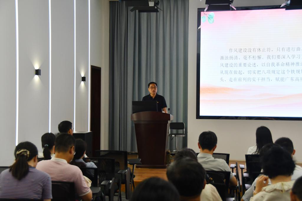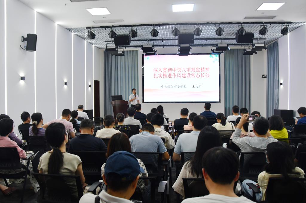 党员干部作了《深入贯彻中央八项规定精神学习教育扎实推进作风建设常态长效》专题辅导报告。王教授从政治、历史、现实等多个维度进行剖析,带领大家原原本本学、逐条逐句学习中央八项规定精神,每一条都讲解清清楚楚、明明白白,同时结合具体案例深入浅出地讲解了如何在日常学习工作生活中深入贯彻中央八项规定精神学习教育,为在场党员干部上了生动一课,提供了宝贵的理论指导与实践思路。