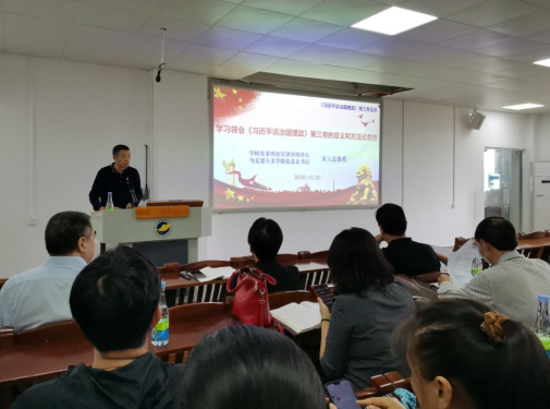 10月28日下午,CAM4 党委在第二教学楼A103会议室召开《习近平谈治国理政》第三卷宣讲报告会。本次宣讲报告会由CAM4 党委书记谢仕义主持,马克思主义CAM4 党总支书记、学校党委理论宣讲团副团长宋玉忠教授主讲,CAM4 全体教职工参加。