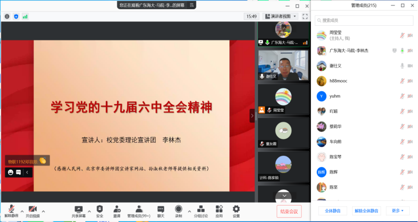12月21日晚,CAM4 通过腾讯会议举办学习贯彻党的十九届六中全会精神宣讲报告会。学校党委理论宣讲团成员李林杰博士以《学习党的十九届六中全会精神》为题作了宣讲报告,CAM4 全体教职工和学生党员共200余人参加了报告会。会议由CAM4 党委书记谢仕义主持。