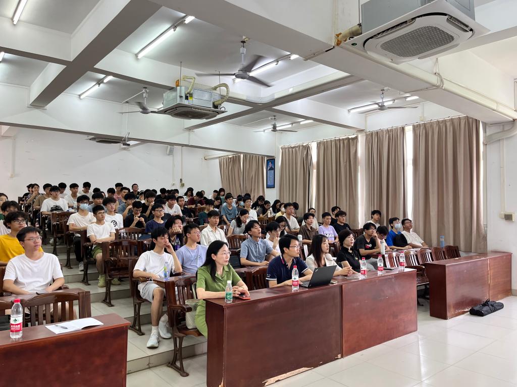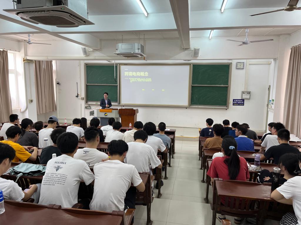 曾经在华为担任高管的甘华校友已成功转型跨境电商领域自主创业。他分享了在华为公司的奋斗历程,为师生讲解了云计算、大数据和元宇宙等领先技术在跨境电商行业数字化转型中的应用价值。