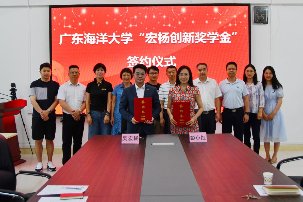 与广州宏杨投资咨询有限公司“宏杨创新奖学金”签约仪式在明德楼405室举行,该公司总经理吴宏杨、深圳聚变未来科技有限公司总经理甘华、CAM4