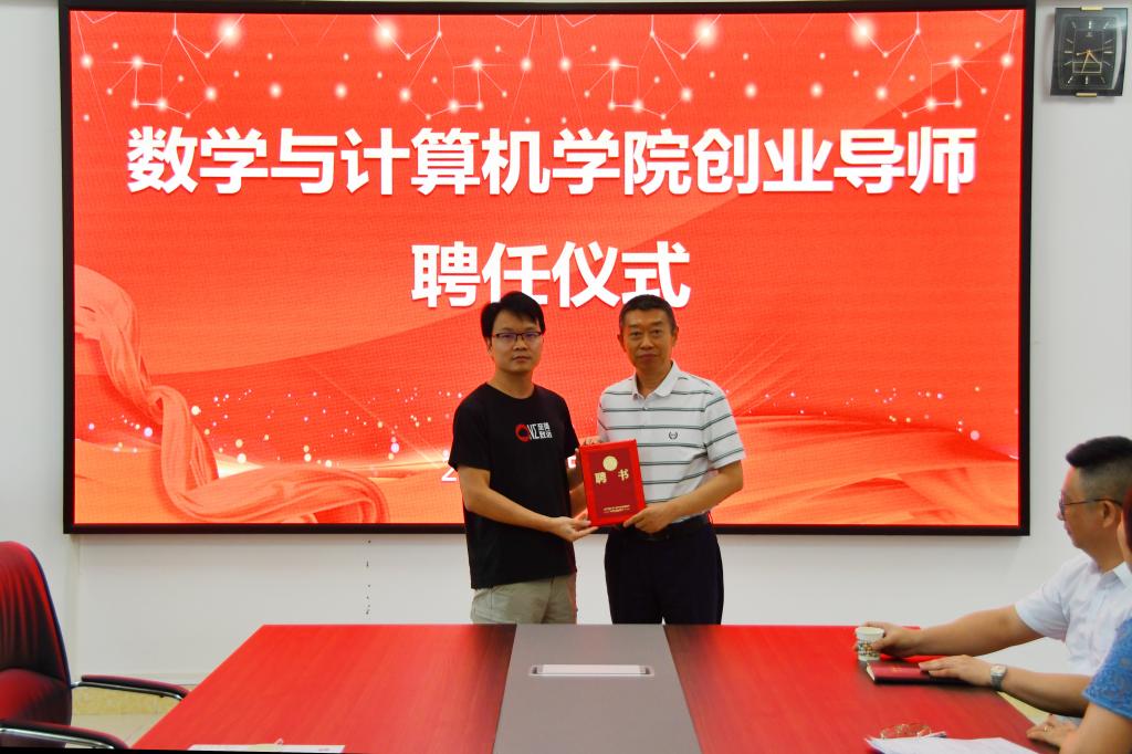 吴宏杨和甘华是计算机科学与技术专业优秀校友。签约仪式上,院长彭小红和吴宏杨签订“宏杨创新奖学金”协议,党委书记谢仕义为两位校友颁发学校创业导师聘书。