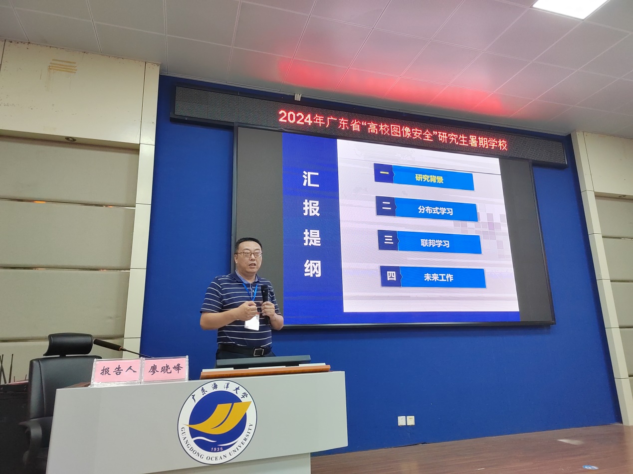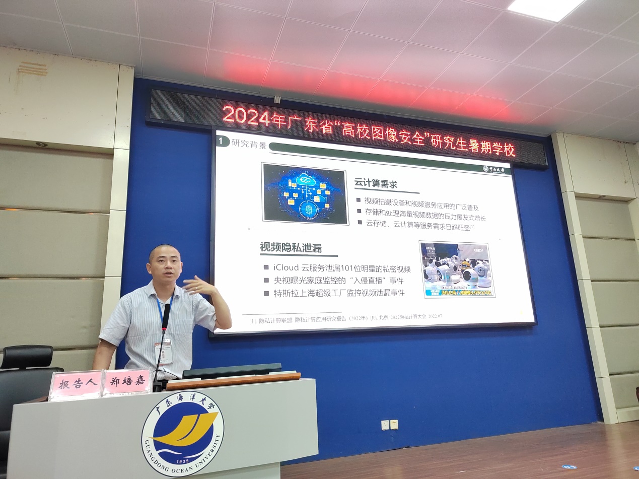 国内学术造诣深、在本学术领域内具有相当影响力的知名专家、学者廖晓峰教授、李春光教授、郑培嘉副教授分别作题为“分布式机器学习的优化及其安全”“异常检测:当正常数据不寻常”“基于深度学习的隐私保护视频分析技术”的特邀专题报告。此外,由10所高校学者代表作学术报告,展示了其研究团队对图像加密领域的学术成果,探讨了图像加密技术的最新进展和应用前景,不仅涵盖了传统的密码学理论,还涉及了人工智能、机器学习等前沿技术在图像加密领域的应用。报告内容精彩纷呈,为暑期学校学员提供了一个深入了解和交流的平台。