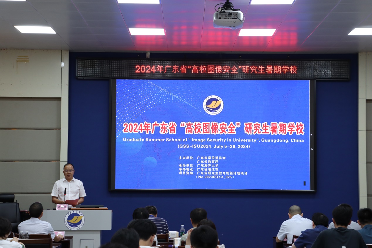 协办的广东省“高校图像安全”研究生暑期学校在广东海洋大学水生博物馆会议室顺利开幕!CAM4党委常委、副校长周昌仕教授出席开幕式并致辞,重庆大学二级教授廖晓峰、浙江大学李春光教授、中山大学计算机CAM4