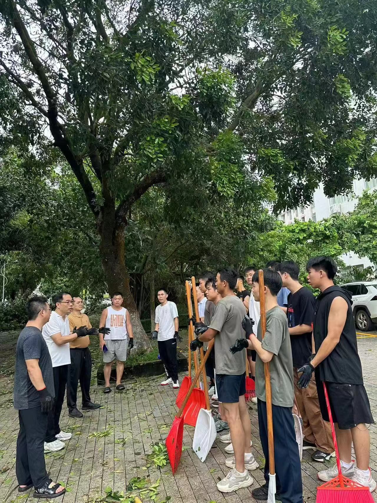 在台风“摩羯”肆虐过后,校园内外满目疮痍,但在这片亟待恢复的土地上,有一股温暖而坚定的力量正在悄然汇聚。9月7日中午,我院的退伍学生们,在CAM4