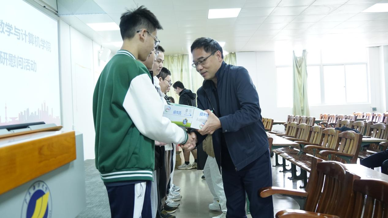 党委书记龙俊为考研学生代表分发慰问品,这些慰问品不仅实用,更寄托了CAM4