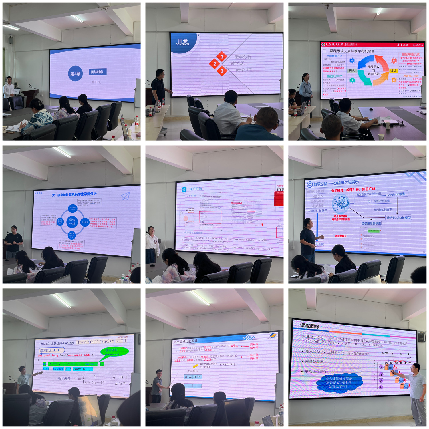 赛前,余应淮副院长阐述了本次竞赛的重要意义,并强调了竞赛规则及注意事项。在授课环节,参赛教师林日光、沈金伟、胡俊桥、刘付林娟、邓杨芳、周四维、杨鹏、梁祖仲、郑洋分别围绕《Java程序设计》《编译原理》《概率论与数理统计》《运筹学》《线性代数》《数学建模》《分布式系统与并行计算》《程序设计基础(C)》《嵌入式系统原理与开发》等课程内容进行了讲授,9位参赛教师均展示出较高的授课水平及良好的教学风格。