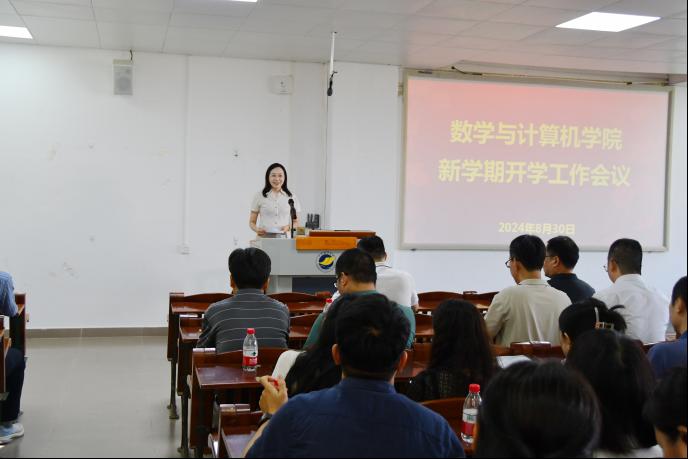 随后,彭小红对2024年秋季新学期的工作进行了部署,重点对加强教师师德师风建设、准备认证专家进校考查、培养教学成果奖、推进AI+教育、开展跨学科科研合作、深入开展双百行动、主办国内国际学术会议、访企脱岗促就业等方面的工作做了详细布置,并对做好开学初的教学工作、学生安全返校等提出了要求。