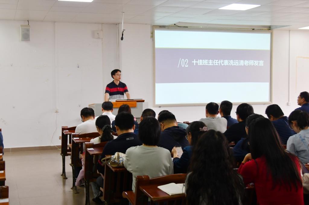 学校“十佳班主任”代表冼远清副教授在会上做班主任工作分享,提出“三坚持”工作法:坚持问题导向,通过课堂考勤、学业预警等制度严抓学风;坚持严管厚爱,建立“一对一”帮扶机制;坚持创新引领,开展个性化指导。他以所带班级为例,展示了严格管理与人文关怀相结合取得的成效。