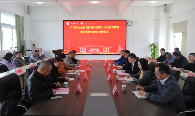 在明德楼A座405会议室举行广东恒电信息科技股份有限公司设备捐赠暨联合共建实验室揭牌仪式。本次活动为学院90周年校庆系列活动之一,广东海洋大学党委书记杨洲,广东恒电信息科技股份有限公司董事长高静、总经理方鑫,清华大学软件学院赵曦滨教授,资产设备管理部部长杨原志,CAM4