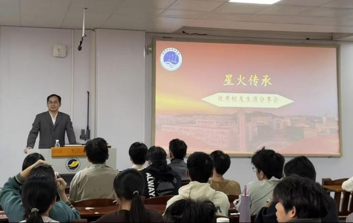 于明德楼A103成功举办优秀校友分享会。会议邀请到2011届校友、腾讯游戏高级开发工程师林瑞柠,以及2021届校友、北京大学硕士、人工智能科学家陈镕浩两位优秀院友返校分享。学院党委副书记农康主持会议,软件工程系副主任刘桃丽、辅导员代表及120余名软件工程专业学生共同参会。