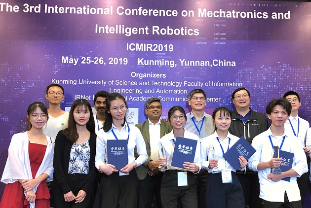 2019年第三届机电一体化与智能机器人国际会议(ICMIR-2019)于5月25日至26日在云南省省府昆明召开,来自世界各地信息、计算机、网络安全、通信技术等研究领域的专家齐聚气候宜人的春城。我院学生科技园创数软件团队学生郑泽锋、李耀璋、刘惠、李慧敏和林佩珊受邀参加此次会议并作口头汇报。