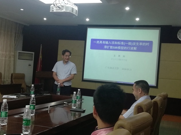 副院长、广东省数学会秘书长王其如教授应我院邀请,在霞山校区第一会议室分别作了题为“Modeling and Analysis on Rayleigh-Taylor Instability”、“函数的连续性、可微性、自相似性与图像处理和计算机安全”、“Traveling wave solutions for a delayed diffusive SIR epidemic model with nonlinear incidence rate and external supplies”的学术报告。我院陈入云教授主持报告会,数学学科教师以及部分研究生聆听了报告。