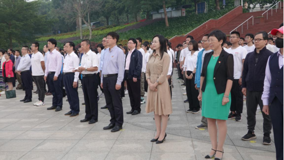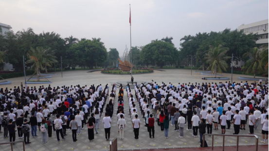在湖光校区海洋广场举行庄重的升旗仪式,学校党委常委刘东超副校长、研究生院、国际交流与合作处、校友办、校团委等单位领导干部,以及CAM4