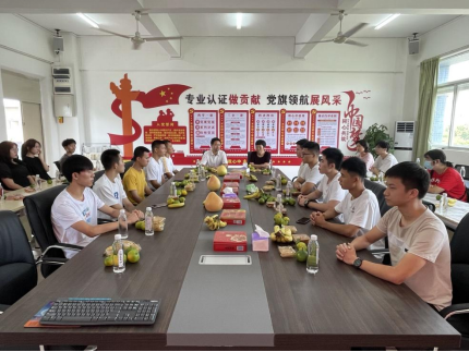 在第二教学楼A405会议室举办中秋师生茶话会暨退役复学学生座谈会,院党委副书记周荣伟,团委书记姚阳,分管学生征兵工作的辅导员陈韶伟,2021年退役复学学生、院团委学生会干部和各系学生代表共40多人参加。