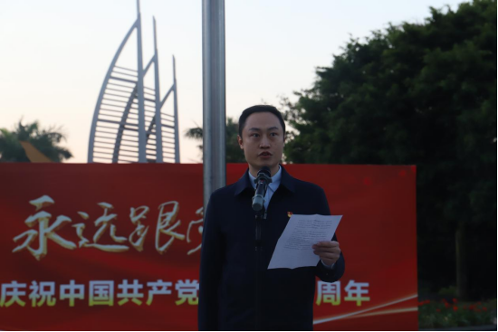 在中国共产党成立100周年之际,为深刻把握党史学习教育重大意义,做到学史明理、学史增信、学史崇德、学史力行,进一步加强爱国主义教育,弘扬爱国主义精神,激发广大师生的爱党爱国热情,按照学校工作安排,11月29日清晨,我院在湖光校区海洋广场举行庄重的升旗仪式。参加升旗仪式的有学校党委常委、副校长、党委宣传部部长刘东超,以及我院领导干部、师生代表共计300余人。仪式由CAM4