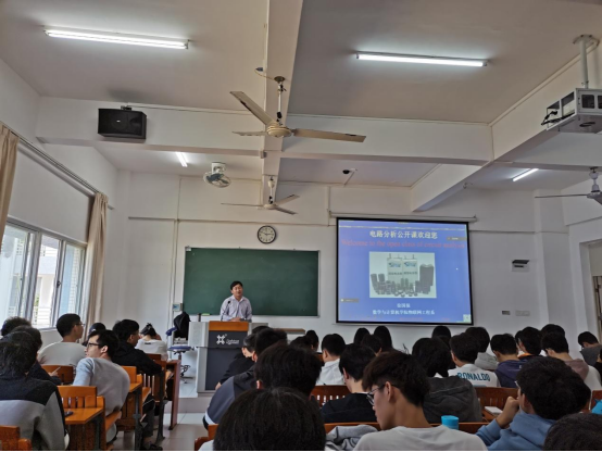 徐老师是省级在线开放课程《电路分析》项目负责人,围绕授课主题作了精心准备,教学形式丰富,授课内容充实,课堂互动积极,教学效果好。上课开始,徐老师先回顾了上节课内容,通过小视频讲解,利用学习通的功能,让学生深度参与到教学中,充分调动学生的积极性。教学中紧贴重点《电路分析》的“全响应”知识,理论与实例相结合,引用了手机充电的案例,让学生从实例中理解全响应概念,巧妙地引入最新发展技术,扩展和启发学生深入思考相关知识,并有机融入课程思政元素。整个教学主题突出,思路清晰,逻辑性强,阐述问题简练准确,深入浅出,语言表达松弛有度,声情并茂,富有感染力,得到在场观摩教师的肯定与赞赏。大家一致认为徐老师的公开课在教学内容、教学方法以及教学效果等方面均取得了较好的预期效果,对CAM4