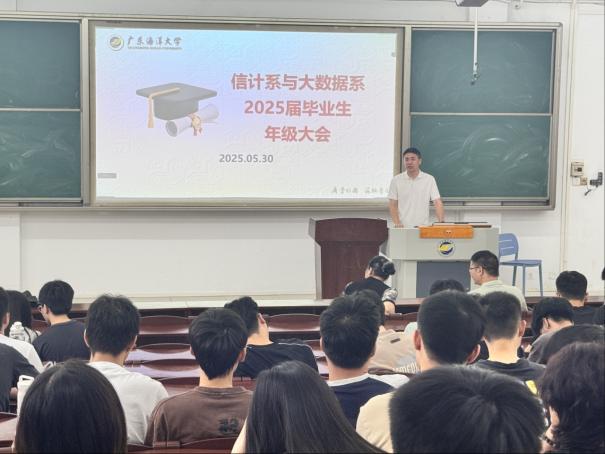 2025年5月30日上午,我院信息与计算科学系与数据科学与大数据技术系在钟海楼02030会议室联合召开2025届毕业生年级大会。两系主任、副主任、辅导员及214名毕业生参会,会议围绕毕业答辩、文明离校、就业指导等重点工作展开部署。会议由辅导员刘利主持。
