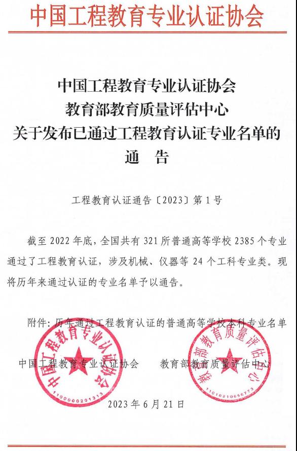 近日,《中国工程教育专业认证协会教育部教育质量评估中心关于发布已通过工程教育认证专业名单的通告》(工程教育认证通告〔2023〕第1号)正式发文,CAM4 计算机科学与技术专业顺利通过认证,有效期为6年(2023年1月至2028年12月)。标志着我院计算机科学与技术专业建设水平取得了历史性突破,实现了专业人才培养质量的国际实质等效,进入了全球工程教育的“第一方阵”。